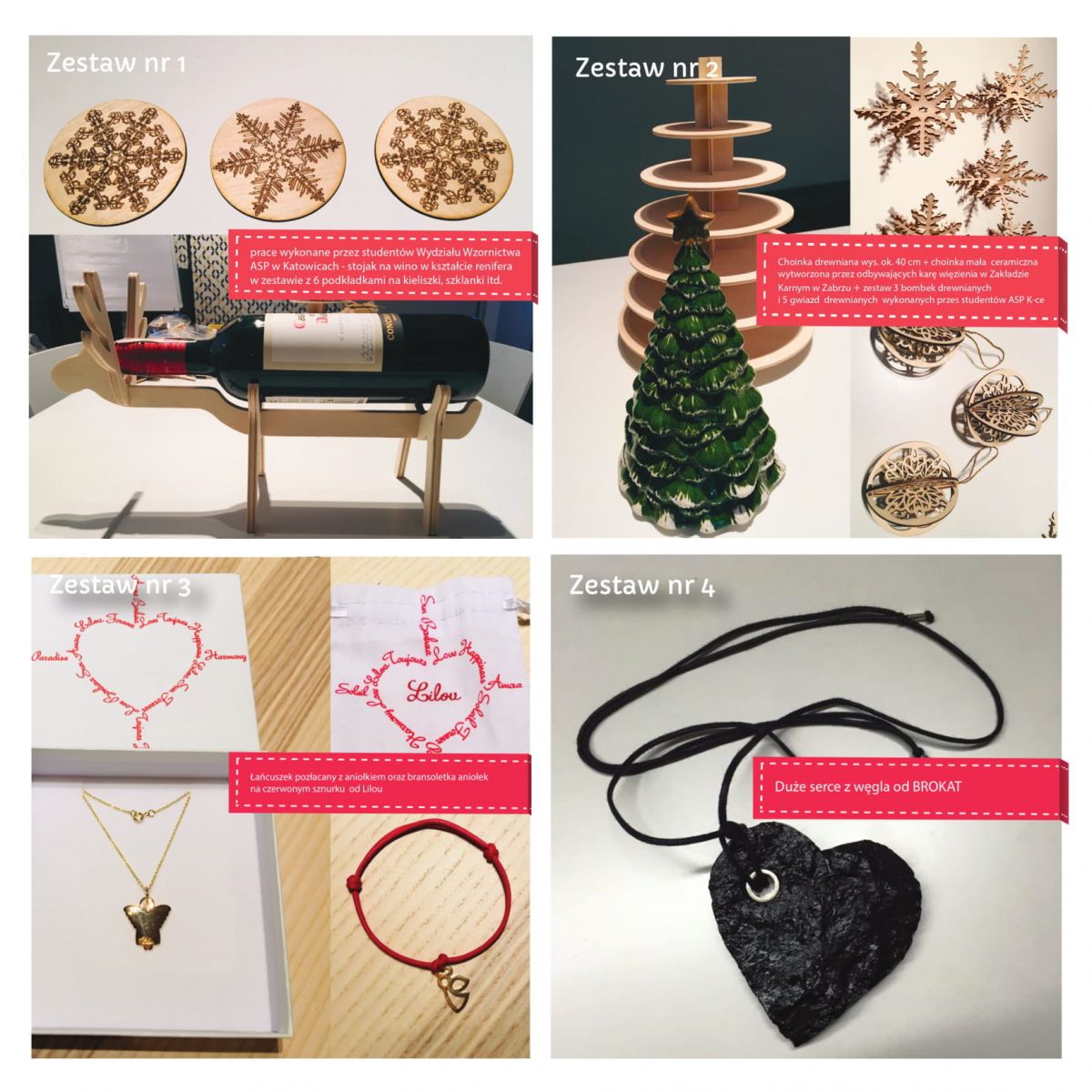 Podczas Bożonarodzeniowej Charytatywnej Aukcji w Radiu Katowice wylicytować będzie można przedmioty stworzone przez studentów wydziału wzornictwa Akademii Sztuk Pięknych w Katowicach, których sponsorem jest DH Supersam. Poza tym przedmioty podarowały: firma Lilou oraz pracownia bro.kat.