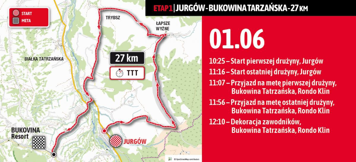 Sobotnia jazda drużynowa na czas z Jurgowa do BUKOVINA RESORT to 27-kilometrowa, trudna trasa pełna krętych podjazdów i szybkich zjazdów. Kolarze nie będą mogli korzystać z rowerów czasowych.