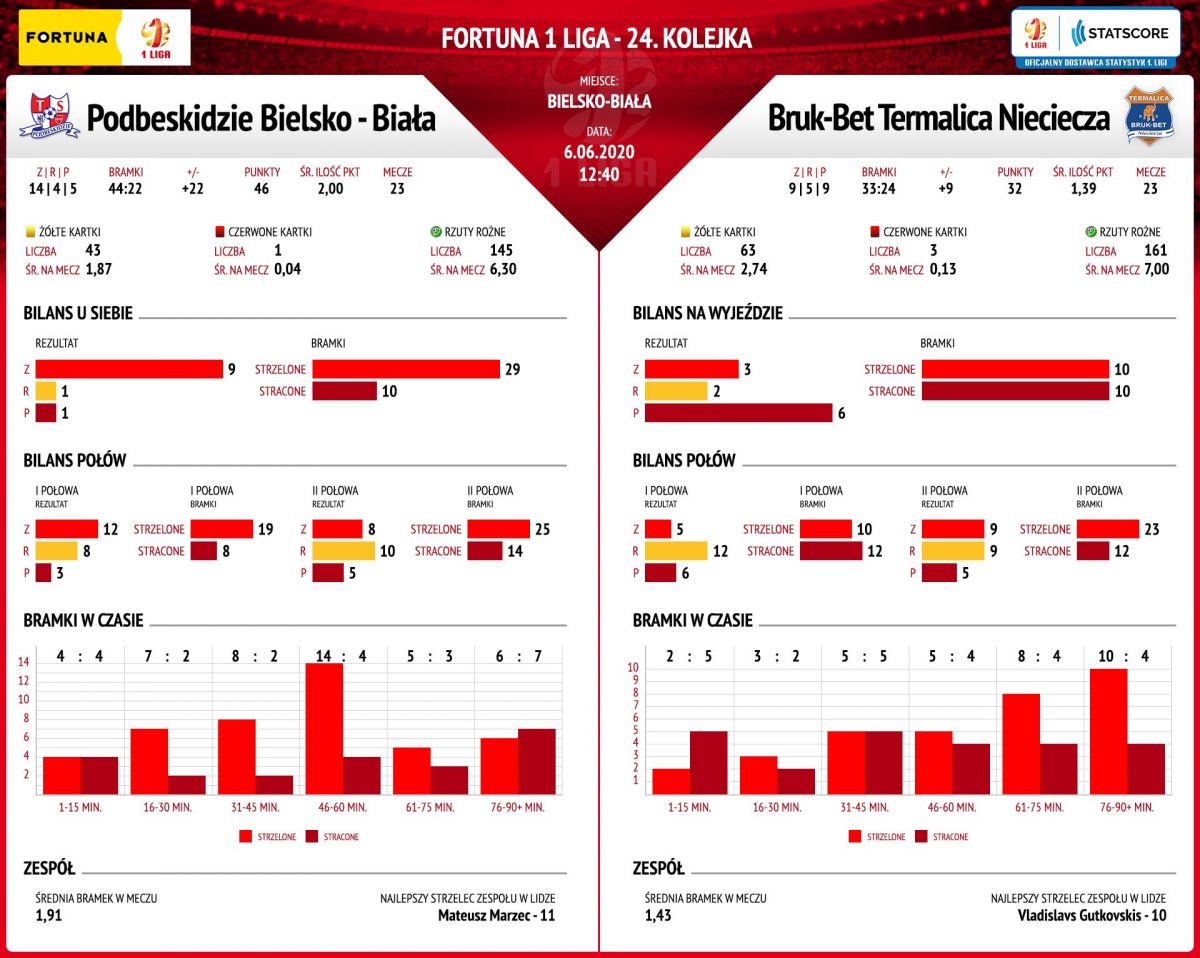 Dziś lider I ligi piłkarskiej Podbeskidzie zmierzy się w Bielsku-Białej z Termalicą Bruk-Bet Nieciecza. To ciekawie zapowiadające się spotkanie będziemy relacjonować transmitować na sportowym kanale na naszej stronie internetowej.