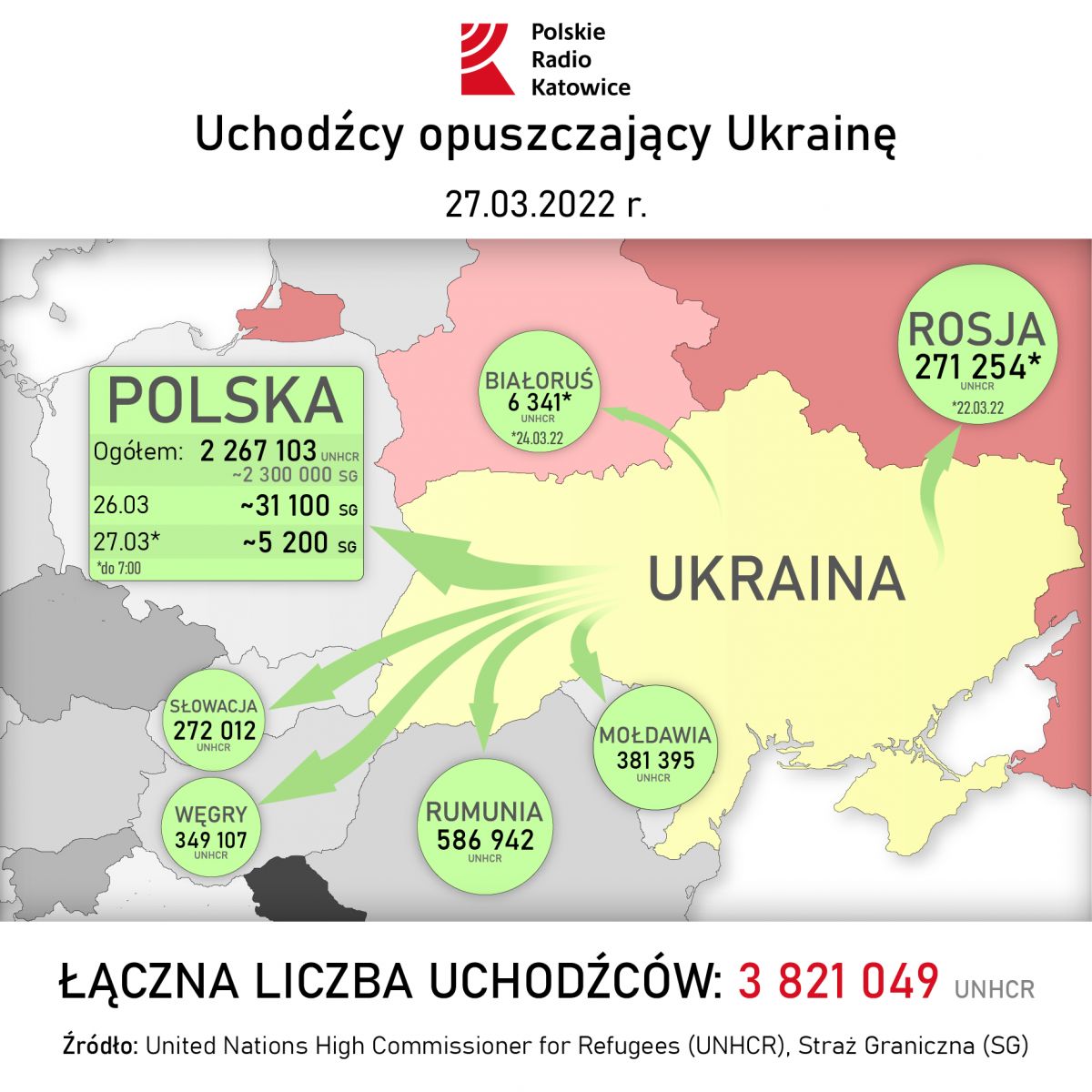 Według najnowszego raportu bieszczadzkiego oddziału Straży Granicznej, minionej doby na podkarpaciu do naszego kraju wjechało blisko 19 tysięcy uchodźców z Ukrainy. Łącznie od 24 lutego schronienie w Polsce znalazło ponad 2,5 miliona Ukraińców.