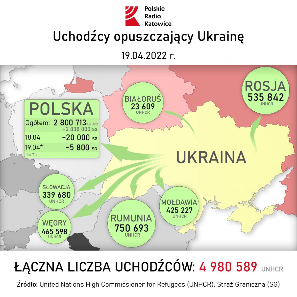 [13:30] Straż Graniczna podała, że od początku rosyjskiej napaści na Ukrainę do Polski wjechało z tego kraju 2 miliony 838 tysięcy uchodźców.